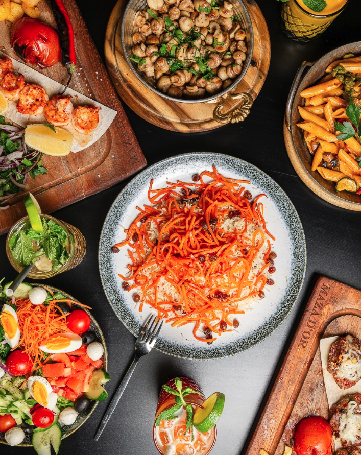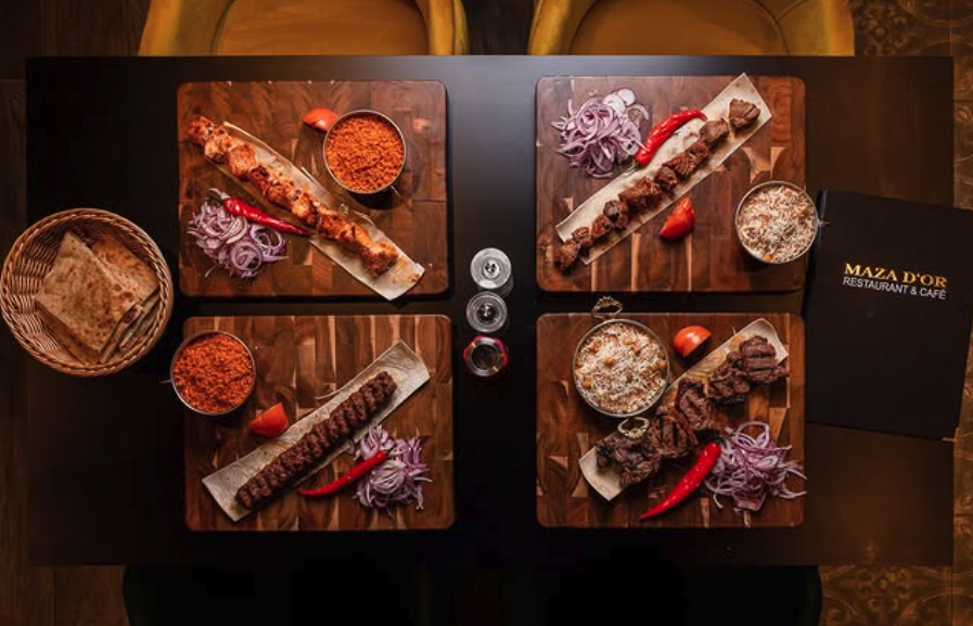 Maza D’or Restaurant & Cafe bietet Ihnen eine Bandbreite an internationalen Gerichten, unter anderem eine Vielfalt orientalischer und hausgemachter Köstlichkeiten an.